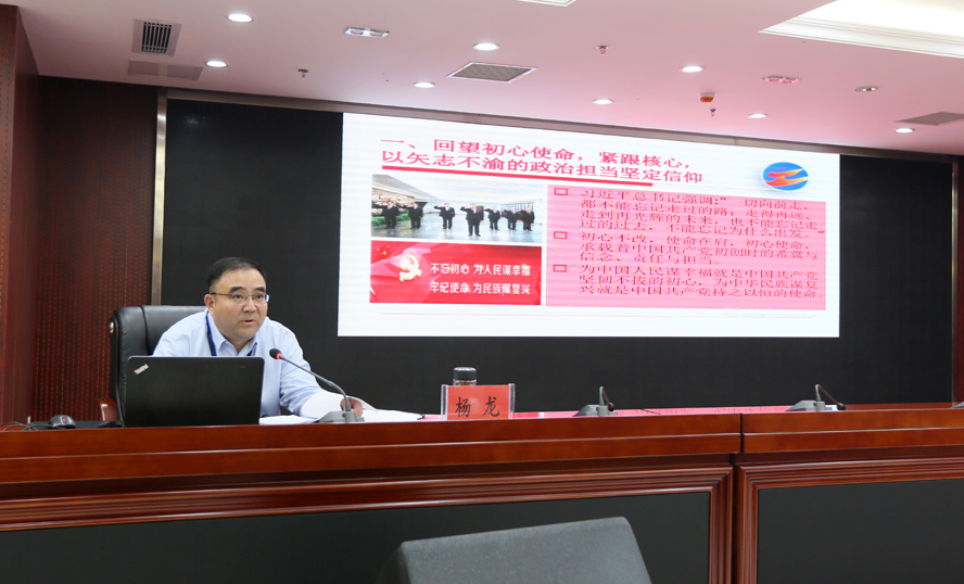 根據(jù)“不忘初心、牢記使命”主題教育總體安排,10月23日,集團(tuán)公司舉辦主題教育專題黨課學(xué)習(xí)會(huì),黨委書記、董事長(zhǎng)、主題教育領(lǐng)導(dǎo)小組組長(zhǎng)楊龍作“堅(jiān)守初心使命、奮力擔(dān)當(dāng)作為,全面推動(dòng)工投集團(tuán)高質(zhì)量跨越發(fā)展”的專題黨課。原市委副秘書長(zhǎng)、主題教育第十指導(dǎo)組組長(zhǎng)徐毓敏到會(huì)指導(dǎo)。集團(tuán)公司黨委副書記、總經(jīng)理胡建明等領(lǐng)導(dǎo)班子成員參加學(xué)習(xí)會(huì)。集團(tuán)公司黨委副書記戴鴻鳴主持學(xué)習(xí)會(huì)。 楊龍從五個(gè)方面入手,詳細(xì)闡述解讀了新時(shí)代工投廣大黨員初心和使命是什么,在集團(tuán)高質(zhì)量跨越發(fā)展進(jìn)程中,共產(chǎn)黨員應(yīng)當(dāng)發(fā)揮什么樣的作用。他指出,要回望初心使命,緊跟核心,以矢志不渝的政治擔(dān)當(dāng)堅(jiān)定信仰。要經(jīng)常捫心自問(wèn)“五個(gè)有沒(méi)有做到”。有沒(méi)有做到把新思想作為最高信仰,把“兩個(gè)維護(hù)”作為根本原則?有沒(méi)有做到把拼搏進(jìn)取作為人生信條,把敢于擔(dān)當(dāng)作為精神境界?有沒(méi)有做到把較真碰硬作為一面鏡子,把敬業(yè)奉獻(xiàn)作為一把尺子?有沒(méi)有做到把群眾滿意作為第一標(biāo)準(zhǔn),把民生改善作為第一追求?有沒(méi)有做到把紀(jì)律規(guī)矩作為立身之本,把清正廉潔作為基本底線?堅(jiān)守信仰信念、筑牢思想根基;淬練政治品格,對(duì)黨絕對(duì)忠誠(chéng);挺起奮斗姿態(tài)、增強(qiáng)責(zé)任擔(dān)當(dāng)。