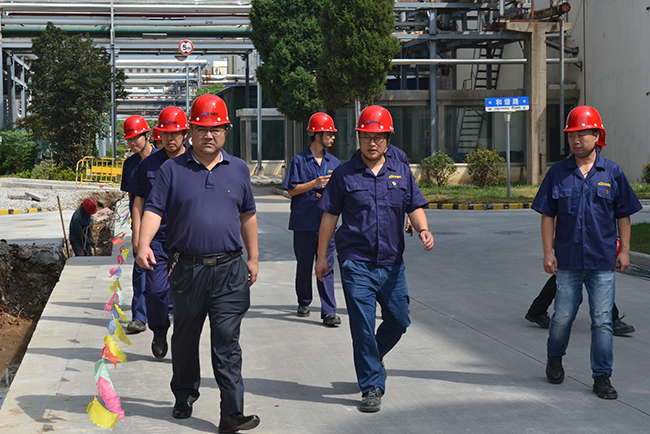 中秋、國(guó)慶臨近,為確保節(jié)日期間安全生產(chǎn),9月6日上午集團(tuán)公司黨委書記、董事長(zhǎng)楊龍來氨綸公司檢查安全生產(chǎn)工作。公司黨委書記趙萬(wàn)明、總經(jīng)理張斌、副總經(jīng)理?xiàng)钌阃?span lang="EN-US">