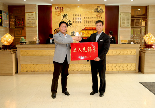 五一前夕,集團公司董事長、黨委書記顧永庚向榮獲2014年度江蘇省“工人先鋒號”榮譽稱號的公司淮鹽大酒店授牌。顧董事長勉勵淮鹽大酒店全體員工繼續(xù)發(fā)揚這種爭創(chuàng)一流的巨大熱情和無窮智慧,珍惜榮譽再創(chuàng)佳績,繼續(xù)擔(dān)當(dāng)服務(wù)行業(yè)的領(lǐng)跑者。這是淮鹽大酒店獲得2013年連云港市“工人先鋒號”和2012年連云港市“五一巾幗標兵崗”后又一榮譽。