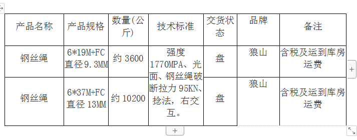 鋼絲繩公開采購公告