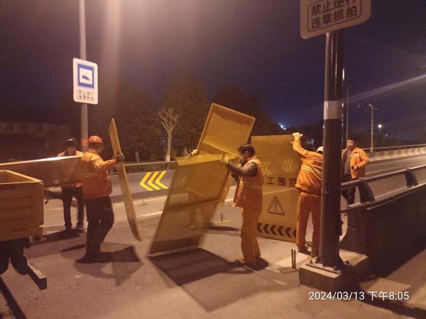通過3個多小時的連續(xù)作業(yè),順利完成馬山立交橋兩側圍擋安裝工作,為城市按下了“安全”鍵。