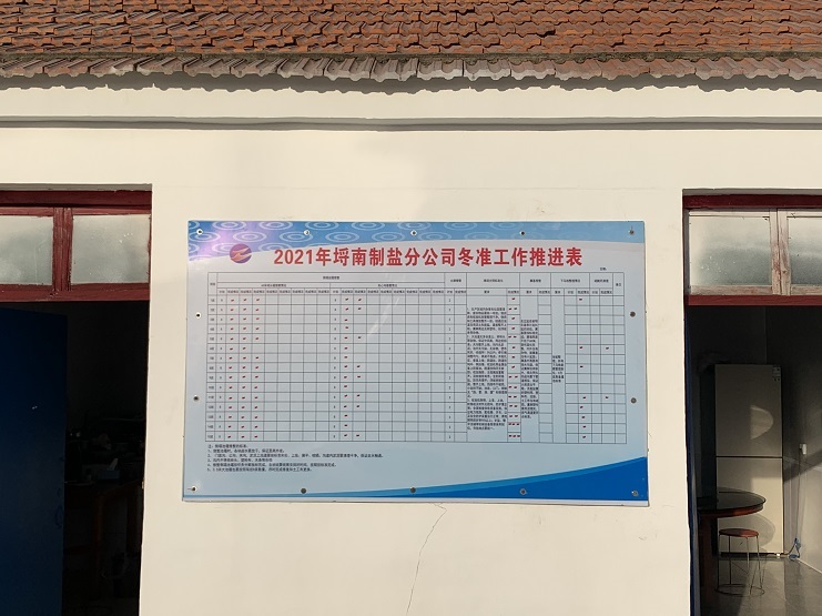 冬季是日曬制鹽收儲鹵水、扒土塘、整理灘場文明的最佳時期,也是為2022年工作起好頭、邁好步的關(guān)鍵時期,為更好落實“冬準”大會會議精神,12月6日上午,埒南制鹽公司制定冬準工作推進表,張貼在公司辦公區(qū)域墻面上,成立“指揮部”掛圖作戰(zhàn),打好冬準戰(zhàn)役促。