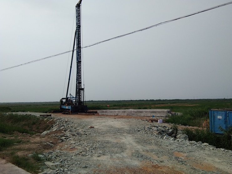 坐落在西旺水產公司農田區(qū)域內的其中的8個風力發(fā)電機建設項目,繼續(xù)協(xié)調、征地、便道鋪建完工后,目前進入樁基施工階段。圖為樁基施工現(xiàn)場(西旺宣)