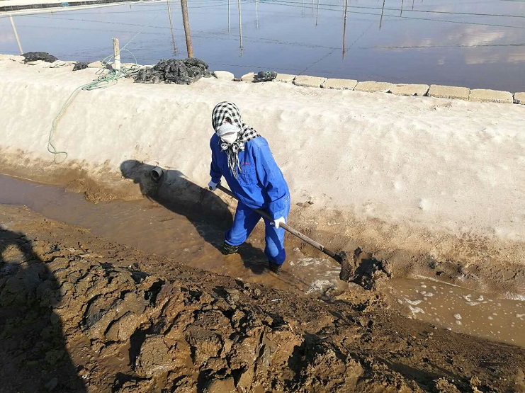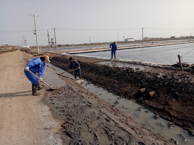 海鹽基地三個(gè)班組,每班集中人力從門面溝開始做起,依次咸頭、甜頭。走進(jìn)灘頭,大家手握鐵锨有挖泥的、踩泥的、澆水的、抹平的,干得熱火朝天。下步將進(jìn)入和格壓格階段工作。(實(shí)業(yè)公司)